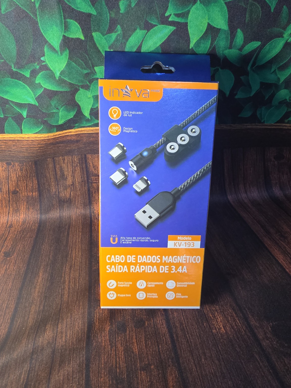 Cabo Magnético 3 em 1 Inova KV-193 Carregamento Rápido 3.4A
