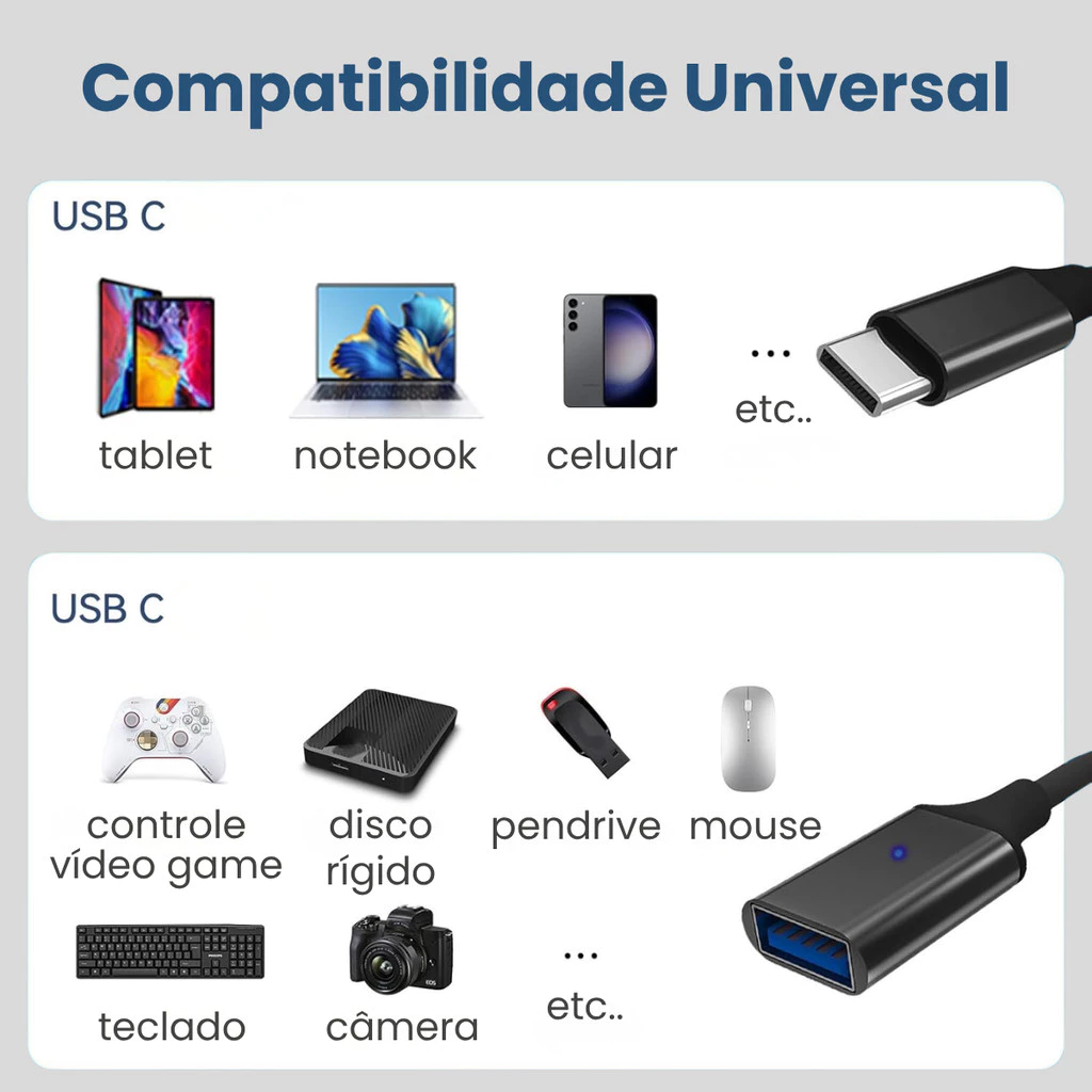 Conecte câmera, teclado, pendrive, mouse e demais acessórios ao seu aparelho e utilize-o com mais facilidade.