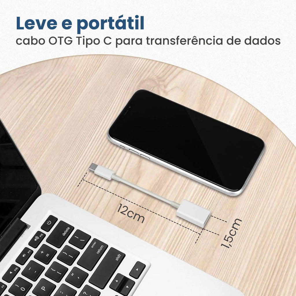 Utilize este cabo adaptador OTG para para troca de dados (fotos, vídeos, entre outros) entre seu celular e outros dispositivos.