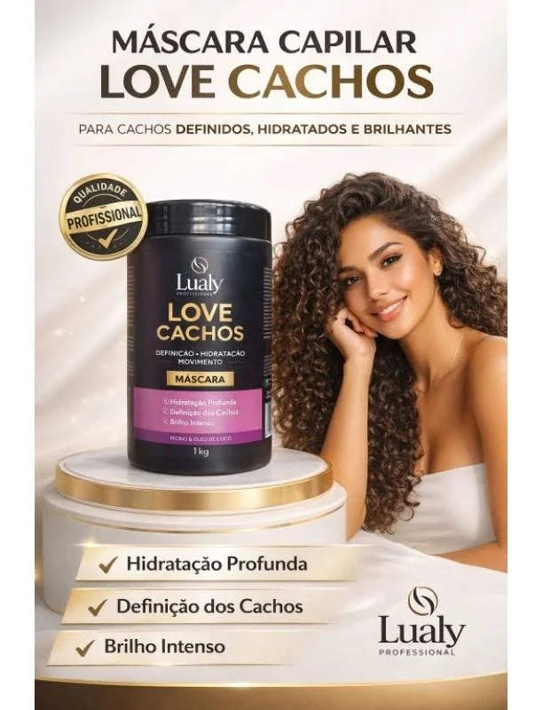 A Máscara Capilar Lualy Love Cachos 1kg foi desenvolvida especialmente para cabelos cacheados e ondulados que buscam definição, hidratação intensa e movimento natural. Sua fórmula é enriquecida com Ricing e Óleo de Coco, que nutrem profundamente os fios, devolvendo maciez e brilho.