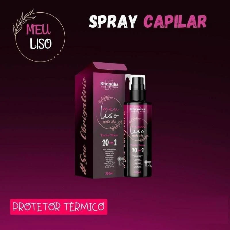 Spray Meu Liso Minha Vida Protetor Térmico 10 Em 1 Meu Liso Minha Vida Protetor Térmico meu Liso Minha Vida É Um Produto Multifuncional Desenvolvido Para Facilitar A Aplicação Nos Cabelos, Deixando-os Com Mais Brilho, Condicionados E Livre De Frizz. Sua Textura Leve Permite Que Os Agentes Nutritivos Sejam Absorvidos Pelos Cabelos Sem Deixá-los Pesados Ou Engordurados. Excelente Opção Para Atender As Mais Diversas Necessidades Como Controlar O Volume, Reparar Os Fios Danificados E Previnir As Pontas Duplas Do Cabelo, Com Ação Desembaraçante. Protegendo Do Calor Dos Secadores E Modeladores Térmicos. modo De Usar: aplique Sobre Os Cabelos Úmidos Ou Secos E Finalize Como Desejar. precauções: não Aplicar O Produto Se O Couro Cabeludo Estiver Irritado Ou Lesionado. em Contato Com Os Olhos, Lavar Com Água Em Abundância. em Caso De Hipersensibilidade Ou Irritação, Suspenda O Uso E Consulte Seu Médico. mantenha Fora Do Alcance Das Crianças E Animais. não Ingerir. mantenha O Produto Em Local Seco, Fresco E Ao Abrigo Da Luz. não Armazenar Em Temperatura Superior A 40c.